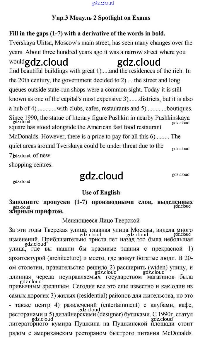 Ответ на задание Use of English Учебник Английский язык за 11 (одиннадцатый) класс Эванс, Дули, Оби, Афанасьева, Михеева Spotlight 2015