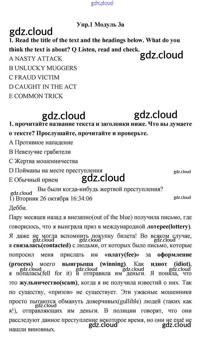 Ответ на задание 1 Учебник Английский язык за 11 (одиннадцатый) класс Эванс, Дули, Оби, Афанасьева, Михеева Spotlight 2015