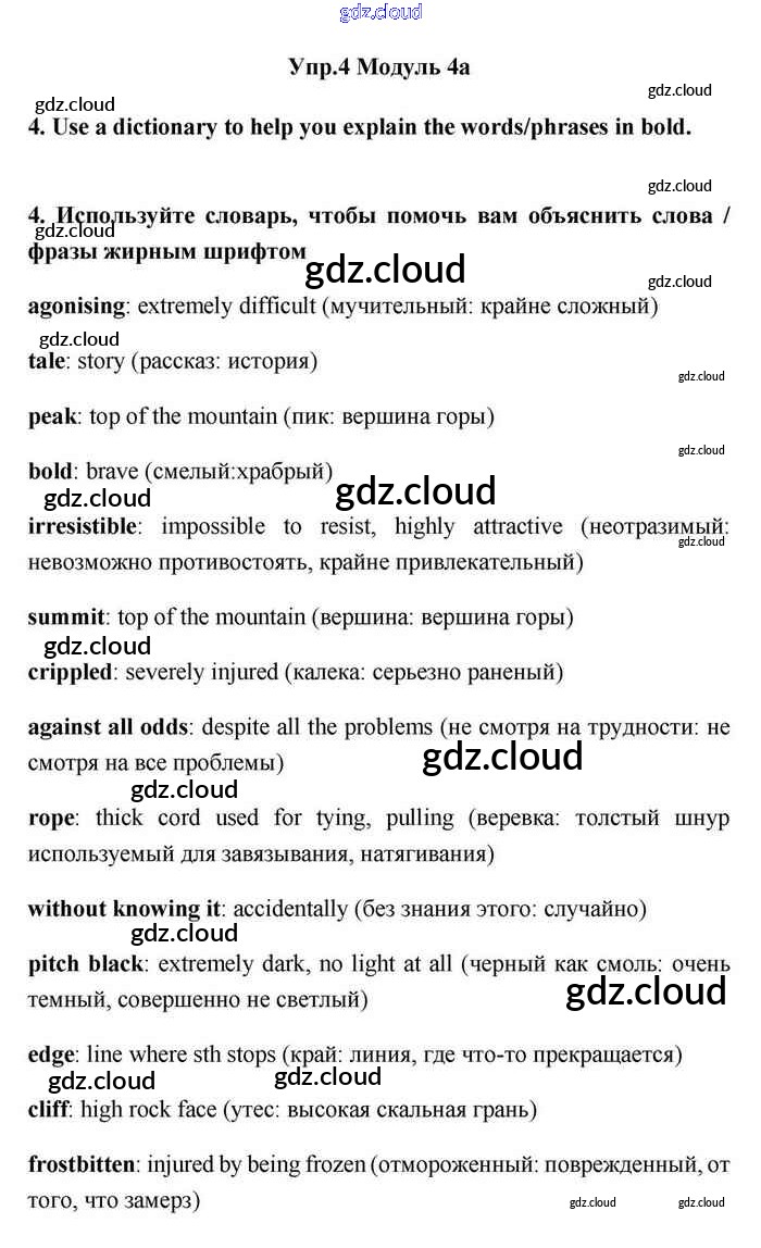 4a Ответы. Module 4. Danger! по Английскому языку 11 класс Учебник Эванс Spotlight Просвещение