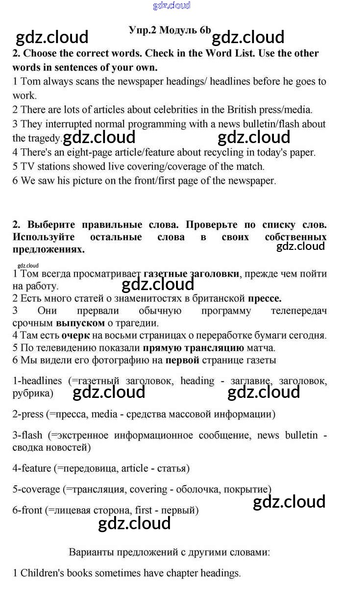 Ответ на задание 2 Учебник Английский язык за 11 (одиннадцатый) класс Эванс, Дули, Оби, Афанасьева, Михеева Spotlight 2015