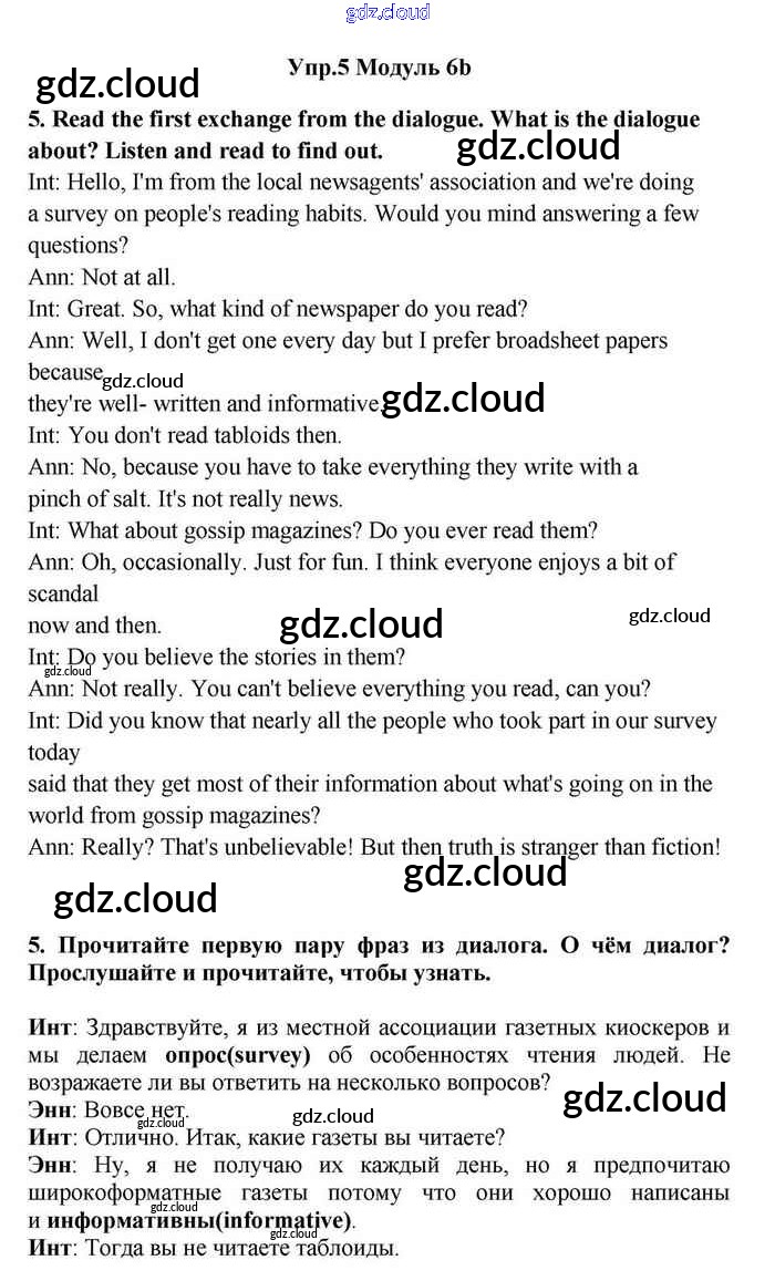 Ответ на задание 5 Учебник Английский язык за 11 (одиннадцатый) класс Эванс, Дули, Оби, Афанасьева, Михеева Spotlight 2015
