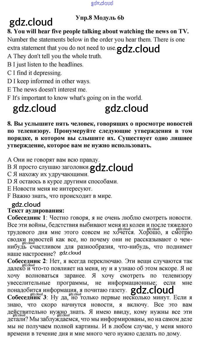 Ответ на задание 8 Учебник Английский язык за 11 (одиннадцатый) класс Эванс, Дули, Оби, Афанасьева, Михеева Spotlight 2015