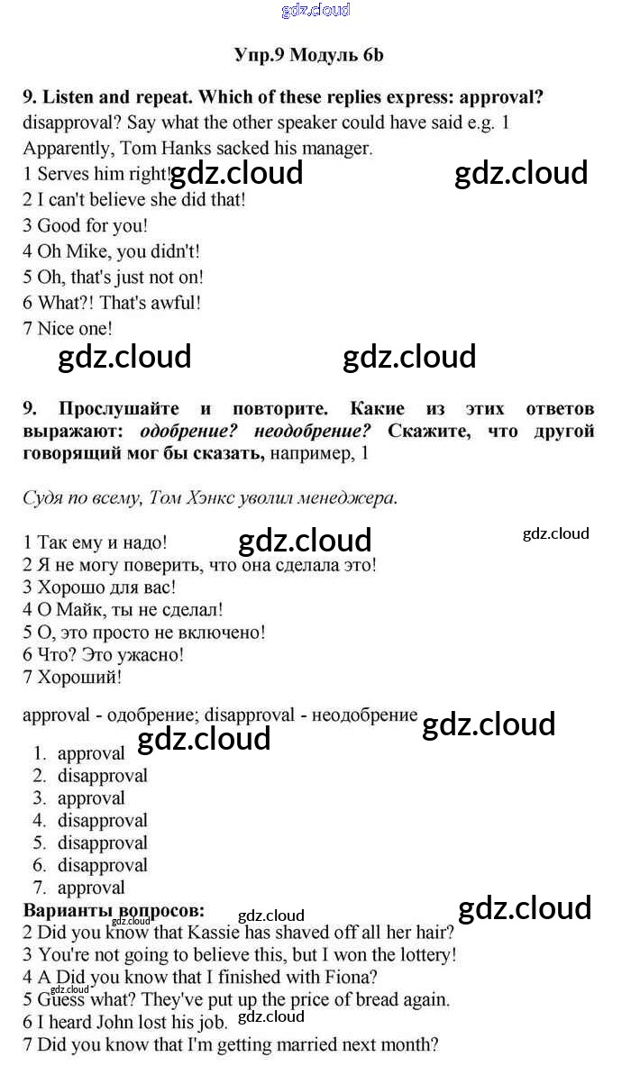 Ответ на задание 9 Учебник Английский язык за 11 (одиннадцатый) класс Эванс, Дули, Оби, Афанасьева, Михеева Spotlight 2015