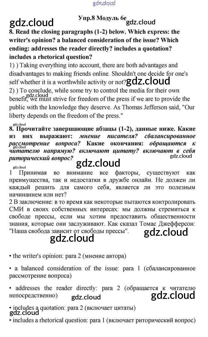 Ответ на задание 8 Учебник Английский язык за 11 (одиннадцатый) класс Эванс, Дули, Оби, Афанасьева, Михеева Spotlight 2015