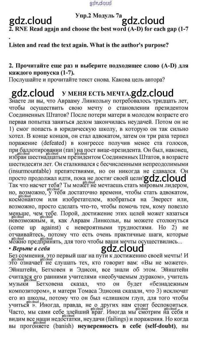Ответ на задание 2 Учебник Английский язык за 11 (одиннадцатый) класс Эванс, Дули, Оби, Афанасьева, Михеева Spotlight 2015