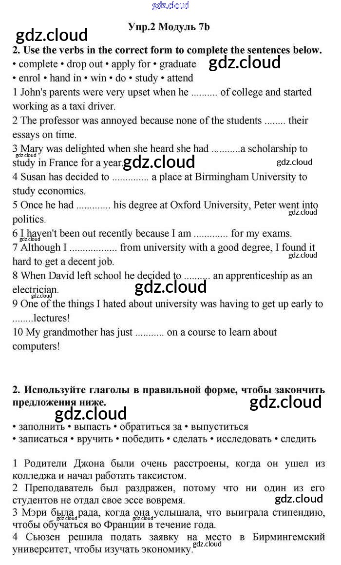 Ответ на задание 2 Учебник Английский язык за 11 (одиннадцатый) класс Эванс, Дули, Оби, Афанасьева, Михеева Spotlight 2015