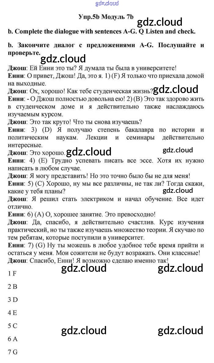 Ответ на задание 5 Учебник Английский язык за 11 (одиннадцатый) класс Эванс, Дули, Оби, Афанасьева, Михеева Spotlight 2015