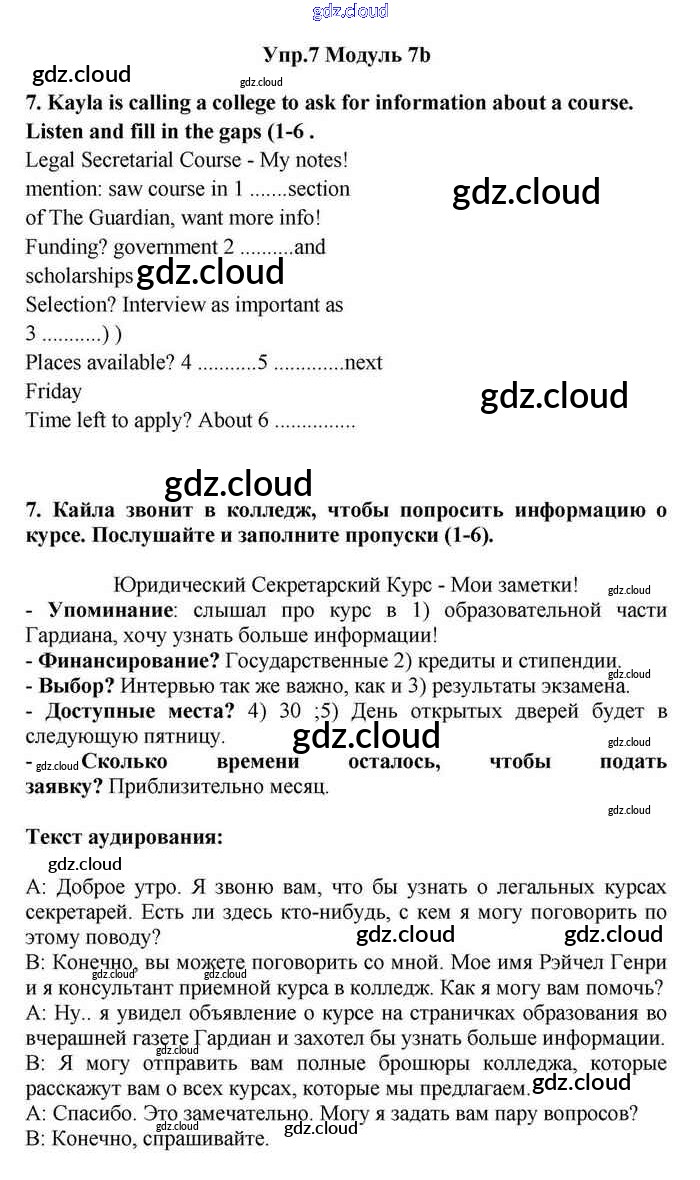 Ответ на задание 7 Учебник Английский язык за 11 (одиннадцатый) класс Эванс, Дули, Оби, Афанасьева, Михеева Spotlight 2015
