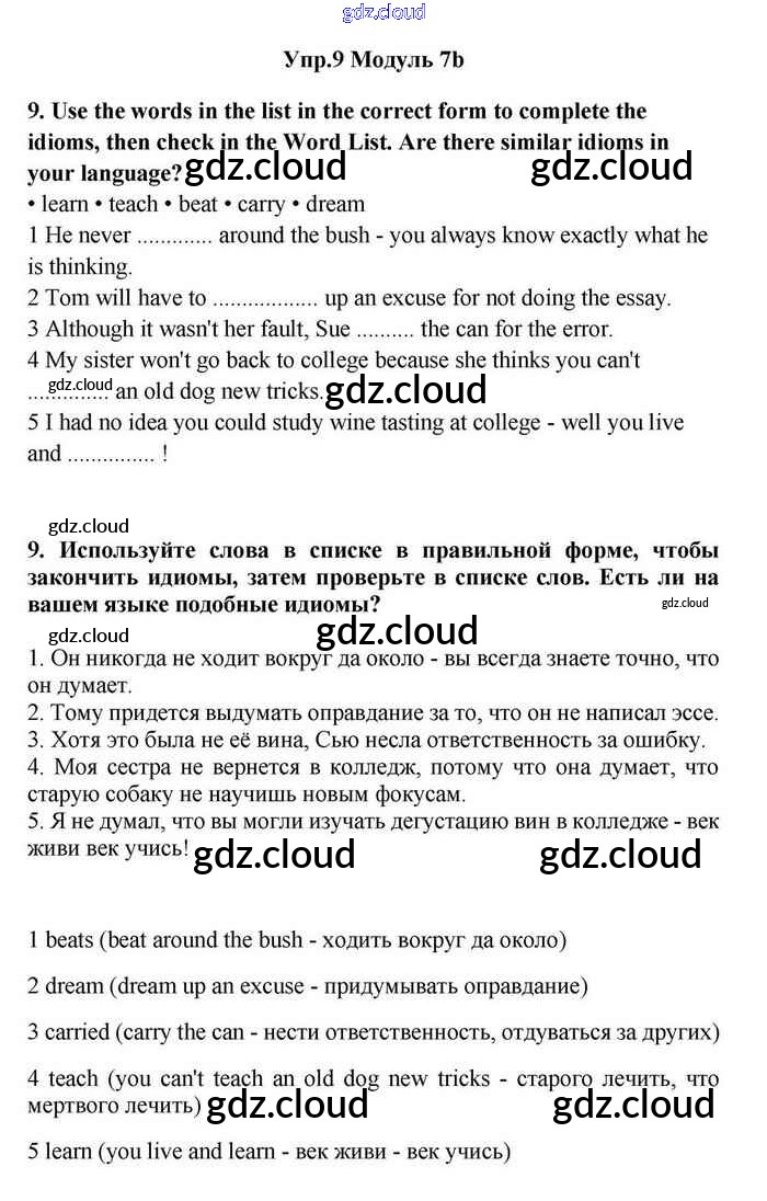 Ответ на задание 9 Учебник Английский язык за 11 (одиннадцатый) класс Эванс, Дули, Оби, Афанасьева, Михеева Spotlight 2015