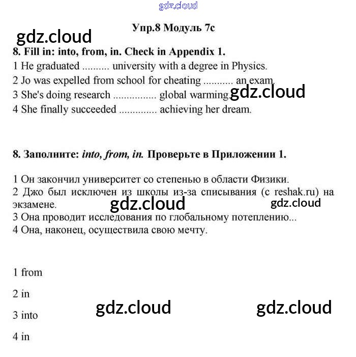 Ответ на задание 8 Учебник Английский язык за 11 (одиннадцатый) класс Эванс, Дули, Оби, Афанасьева, Михеева Spotlight 2015