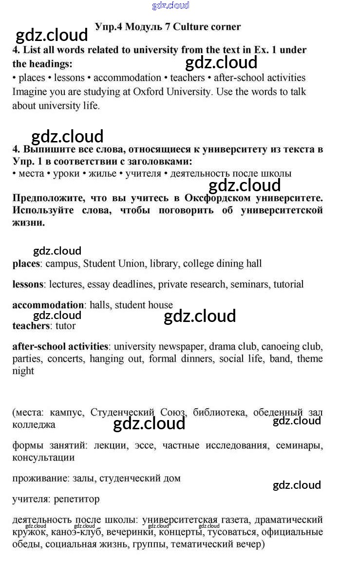 Ответ на задание 4 Учебник Английский язык за 11 (одиннадцатый) класс Эванс, Дули, Оби, Афанасьева, Михеева Spotlight 2015