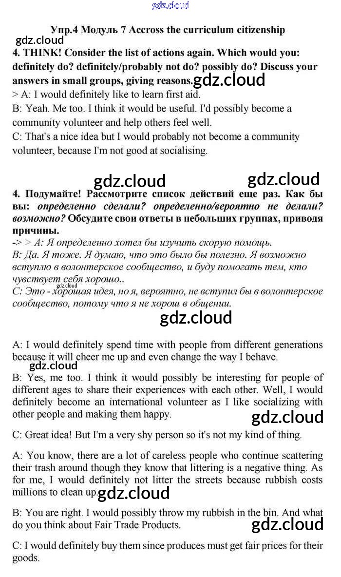 Ответ на задание 4 Учебник Английский язык за 11 (одиннадцатый) класс Эванс, Дули, Оби, Афанасьева, Михеева Spotlight 2015