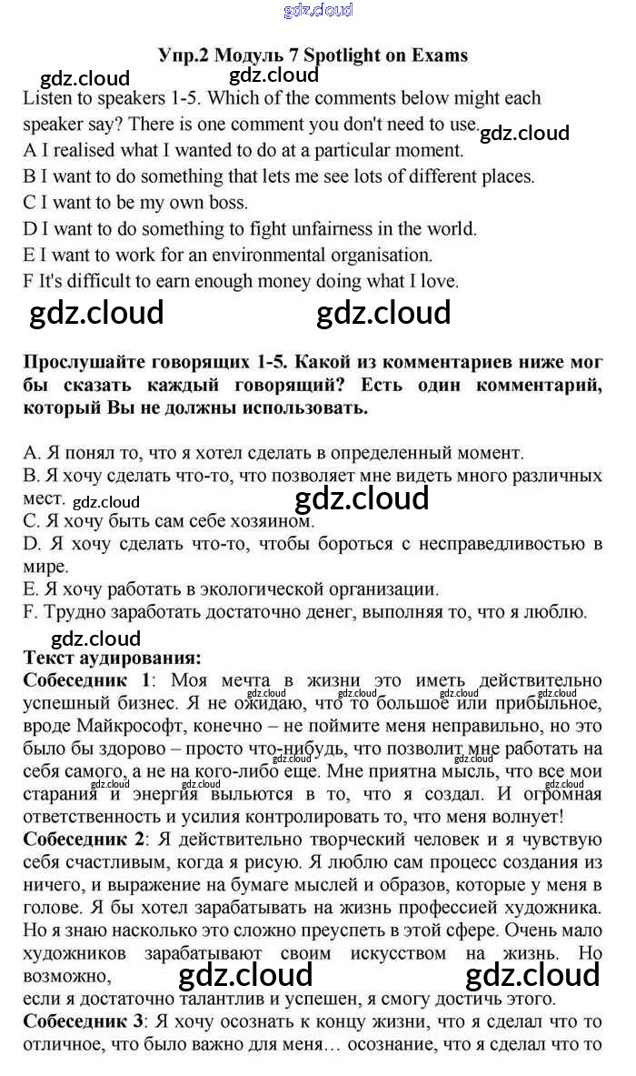 Spotlight on exams Ответы. Module 7. In days to come по Английскому языку 11 класс Учебник Эванс Spotlight Просвещение