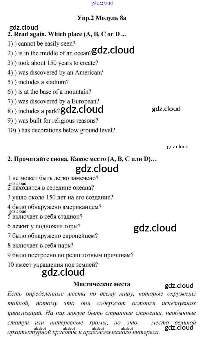 Ответ на задание 2 Учебник Английский язык за 11 (одиннадцатый) класс Эванс, Дули, Оби, Афанасьева, Михеева Spotlight 2015
