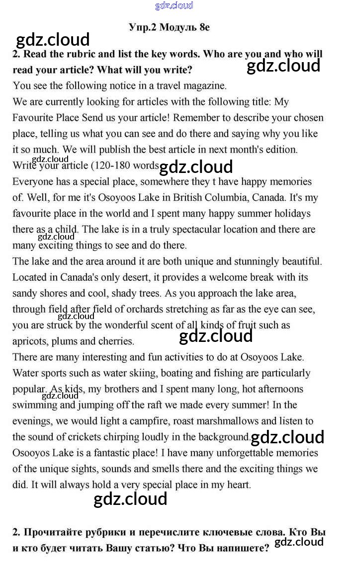 Ответ на задание 2 Учебник Английский язык за 11 (одиннадцатый) класс Эванс, Дули, Оби, Афанасьева, Михеева Spotlight 2015
