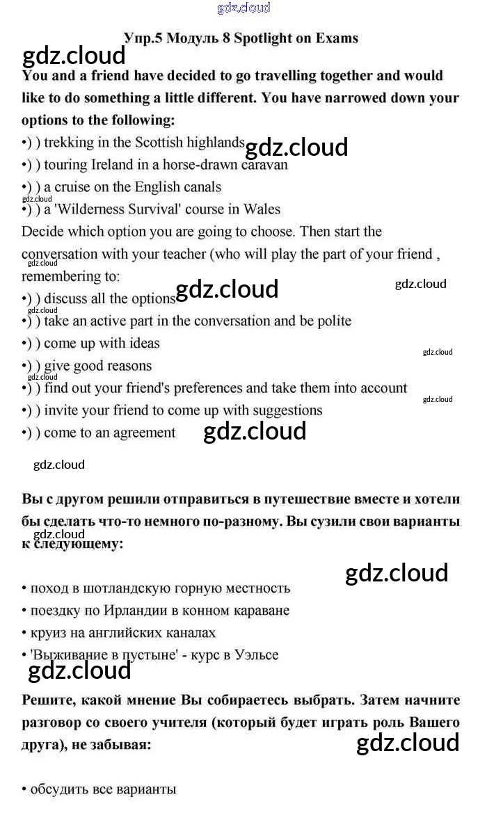 Spotlight on exams Ответы. Module 8. Travel по Английскому языку 11 класс Учебник Эванс Spotlight Просвещение