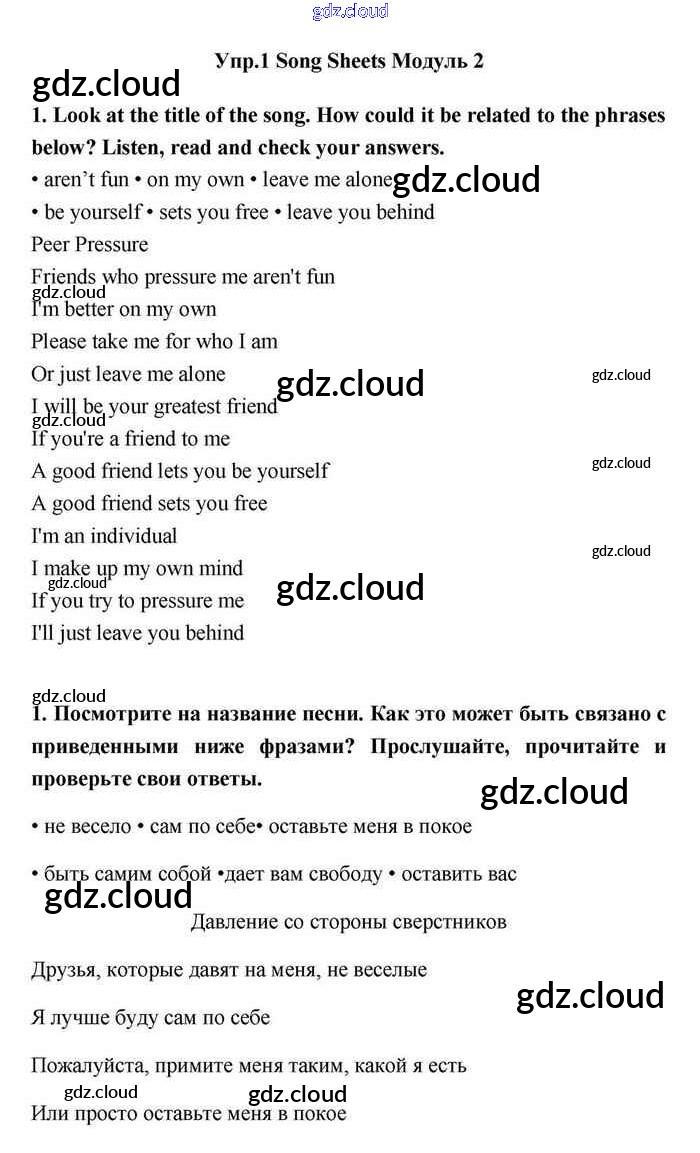 Module 2 Ответы. Song sheets по Английскому языку 11 класс Учебник Эванс Spotlight Просвещение