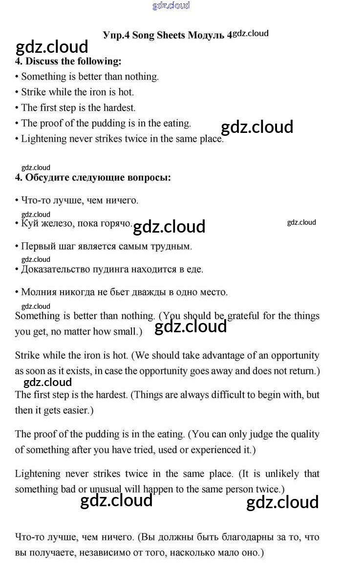 Module 4 Ответы. Song sheets по Английскому языку 11 класс Учебник Эванс Spotlight Просвещение
