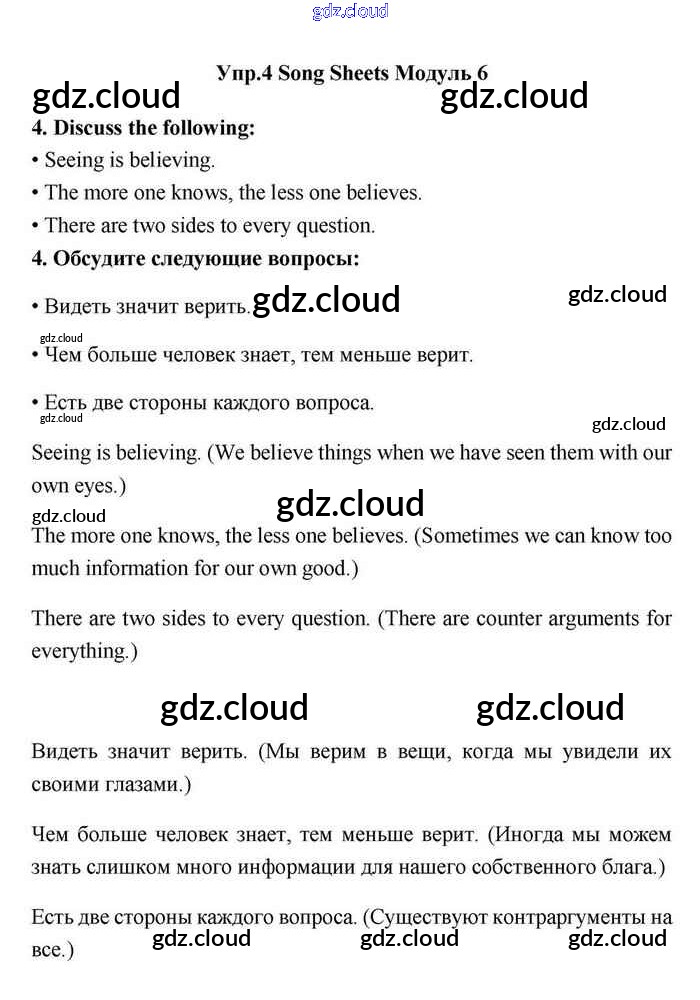 Module 6 Ответы. Song sheets по Английскому языку 11 класс Учебник Эванс Spotlight Просвещение