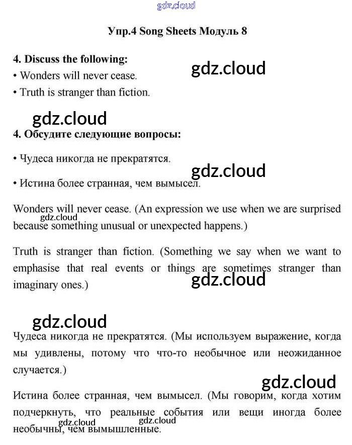 Module 8 Ответы. Song sheets по Английскому языку 11 класс Учебник Эванс Spotlight Просвещение