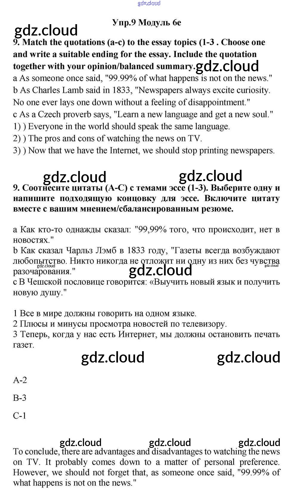 Ответ на задание 9 Учебник Английский язык за 11 (одиннадцатый) класс Эванс, Дули, Оби, Афанасьева, Михеева Spotlight 2015