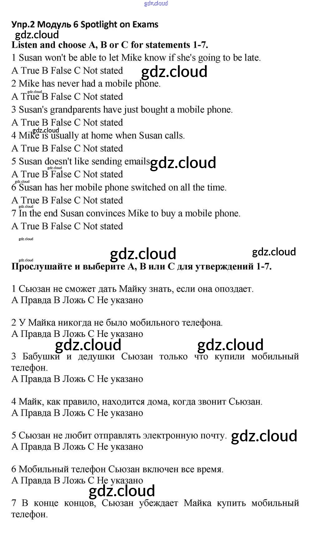 Ответ на задание 2 Учебник Английский язык за 11 (одиннадцатый) класс Эванс, Дули, Оби, Афанасьева, Михеева Spotlight 2015