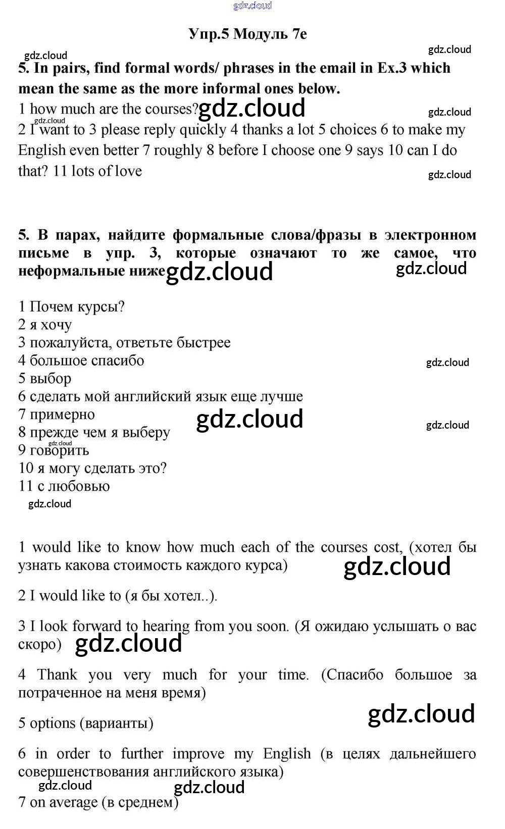 Ответ на задание 5 Учебник Английский язык за 11 (одиннадцатый) класс Эванс, Дули, Оби, Афанасьева, Михеева Spotlight 2015