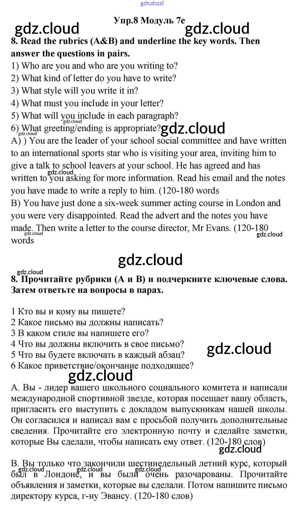 Ответ на задание 8 Учебник Английский язык за 11 (одиннадцатый) класс Эванс, Дули, Оби, Афанасьева, Михеева Spotlight 2015