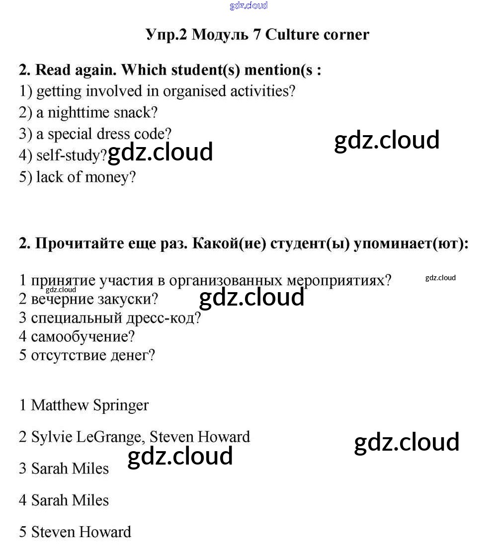 Ответ на задание 2 Учебник Английский язык за 11 (одиннадцатый) класс Эванс, Дули, Оби, Афанасьева, Михеева Spotlight 2015