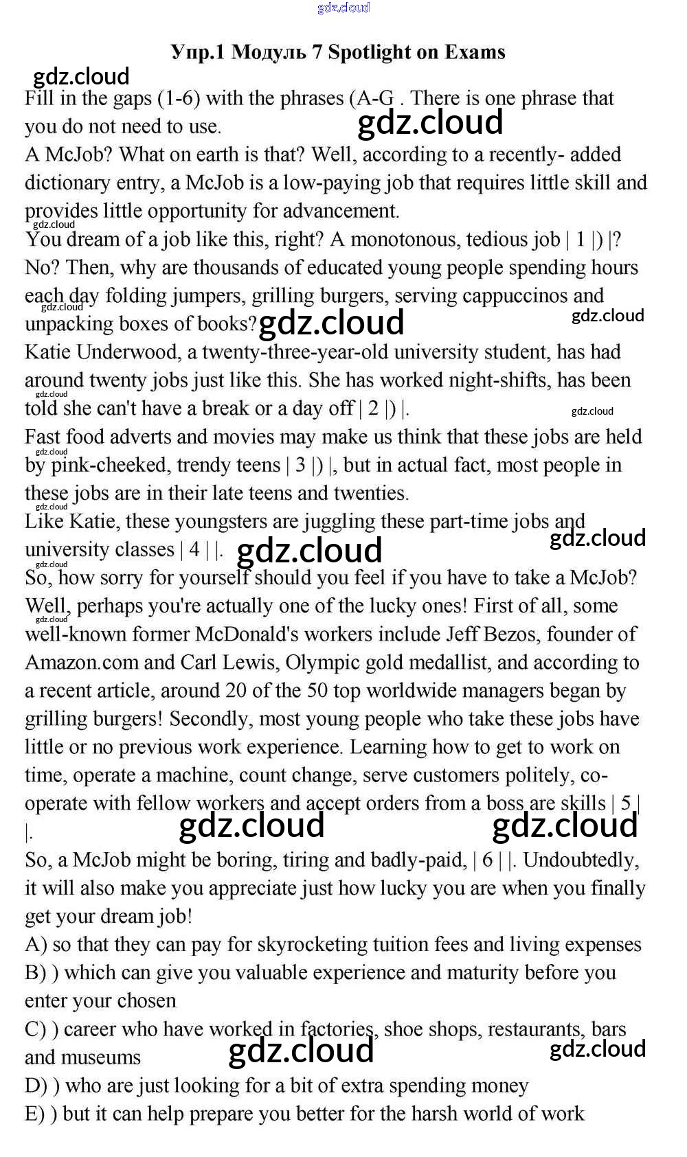 Spotlight on Exams Ответы к Module 7 по Английскому языку 11 класс Учебник Эванс Spotlight Просвещение