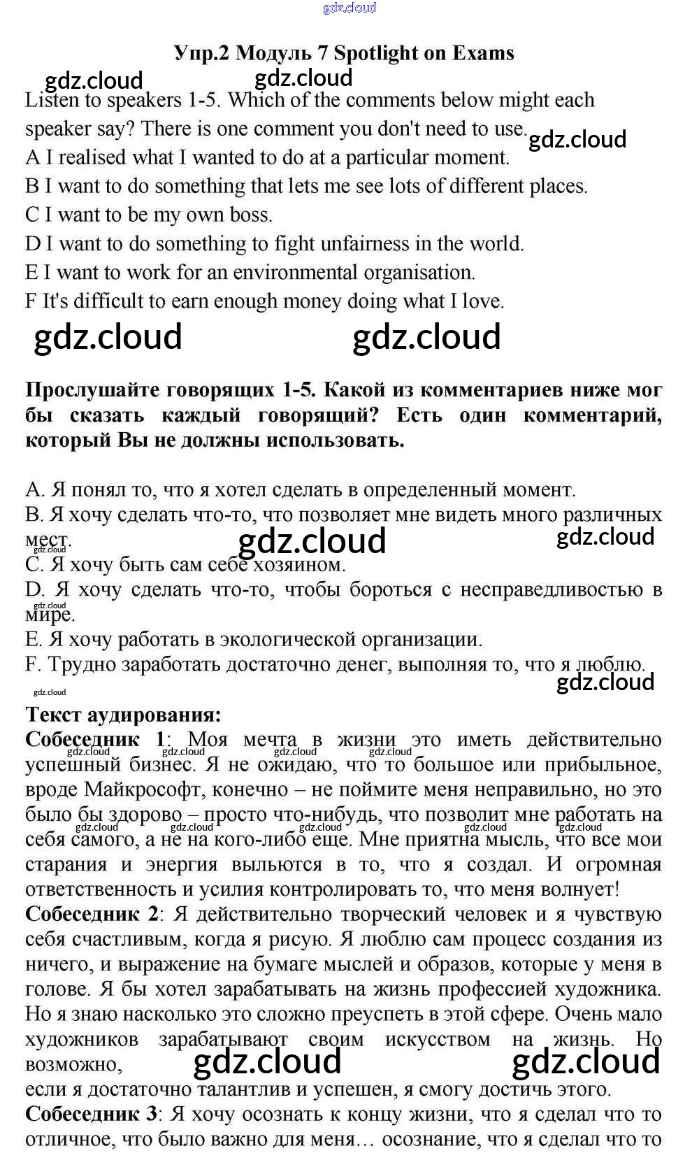 Spotlight on Exams Ответы к Module 7 по Английскому языку 11 класс Учебник Эванс Spotlight Просвещение