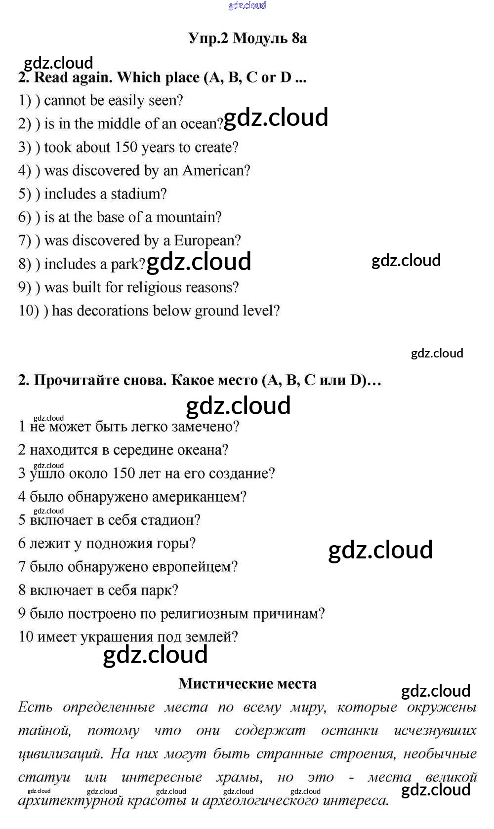 Ответ на задание 2 Учебник Английский язык за 11 (одиннадцатый) класс Эванс, Дули, Оби, Афанасьева, Михеева Spotlight 2015