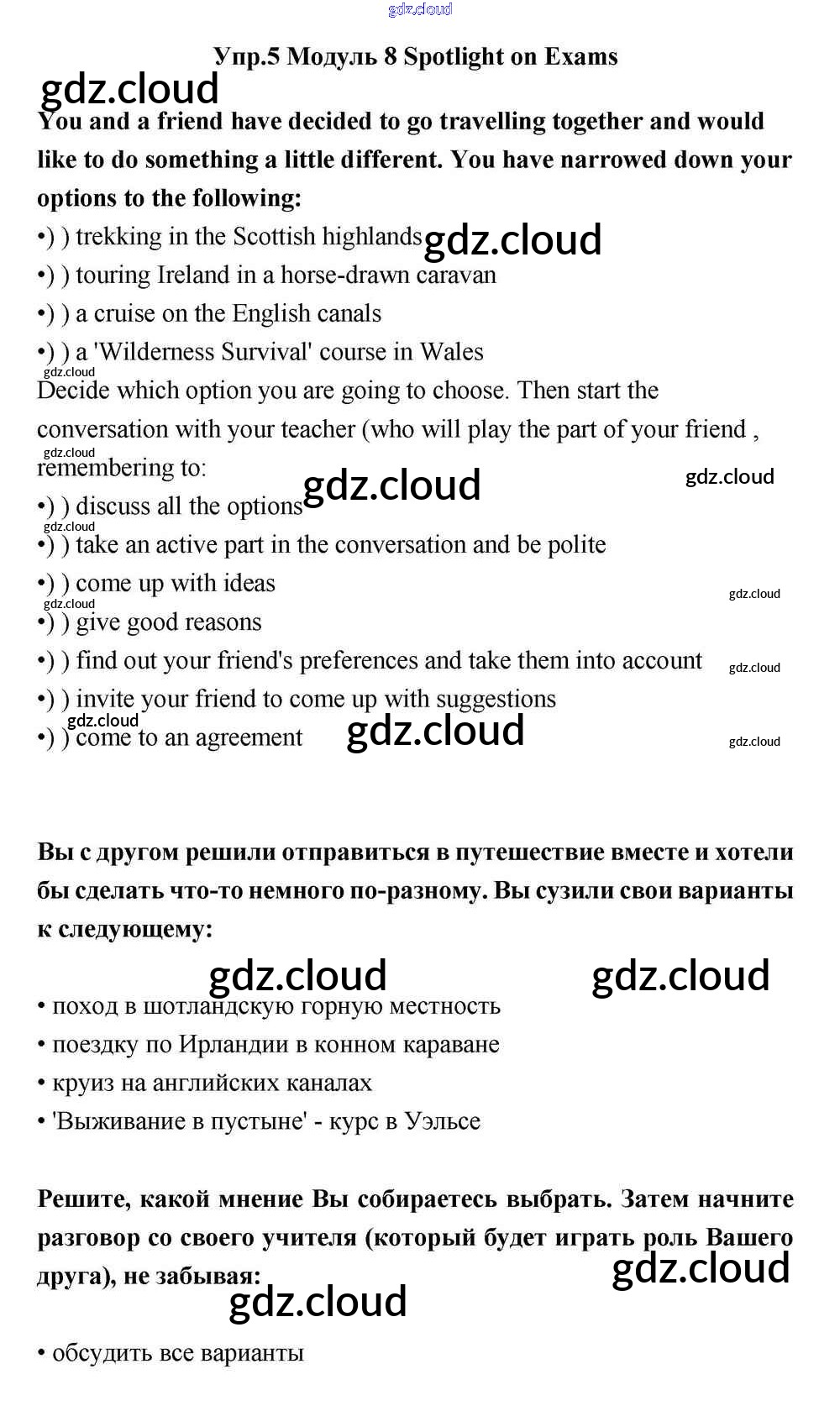 Ответ на задание 5 Учебник Английский язык за 11 (одиннадцатый) класс Эванс, Дули, Оби, Афанасьева, Михеева Spotlight 2015