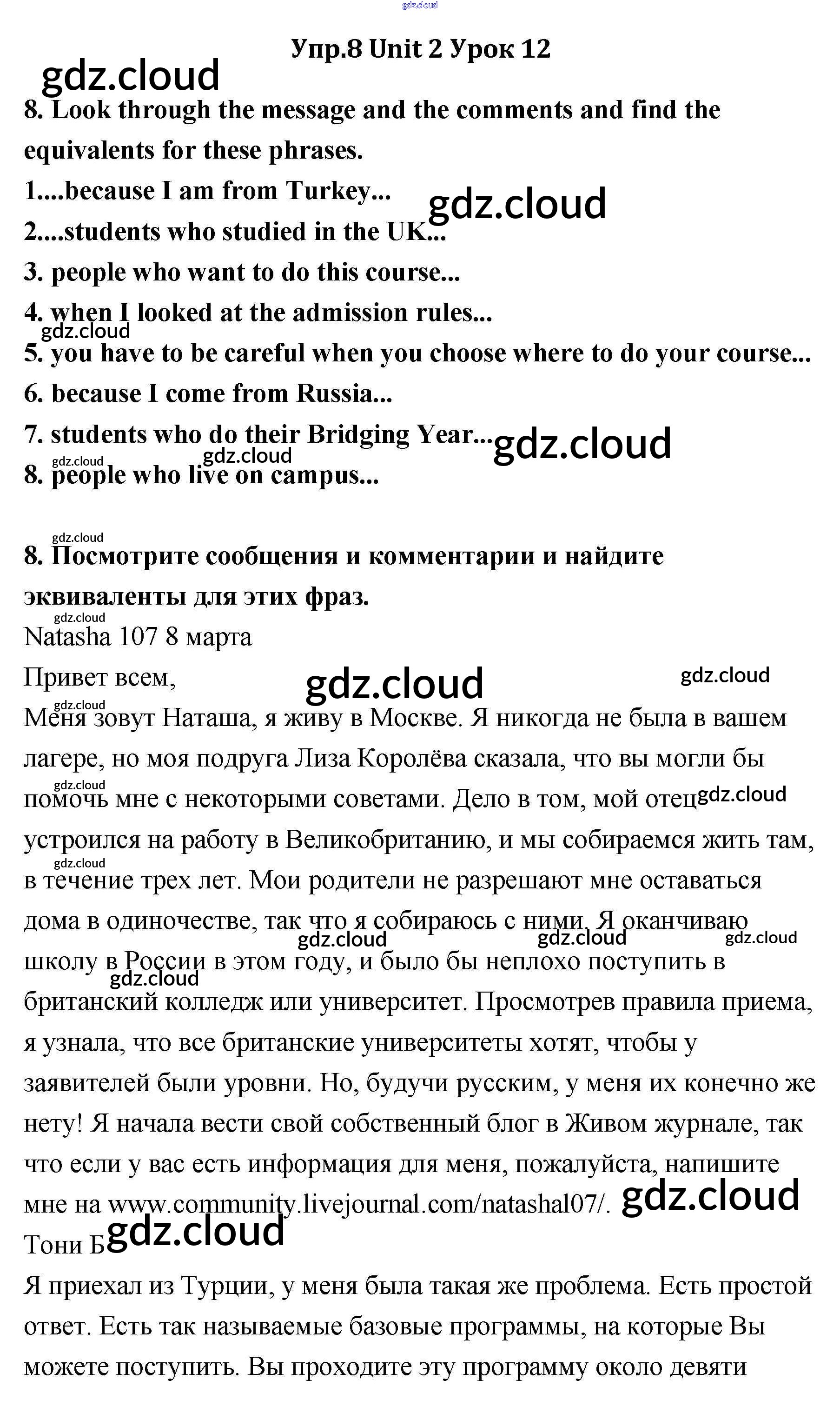 Ответ на задание 8 Учебник Английский язык за 11 (одиннадцатый) класс Кауфман Happy English 2014