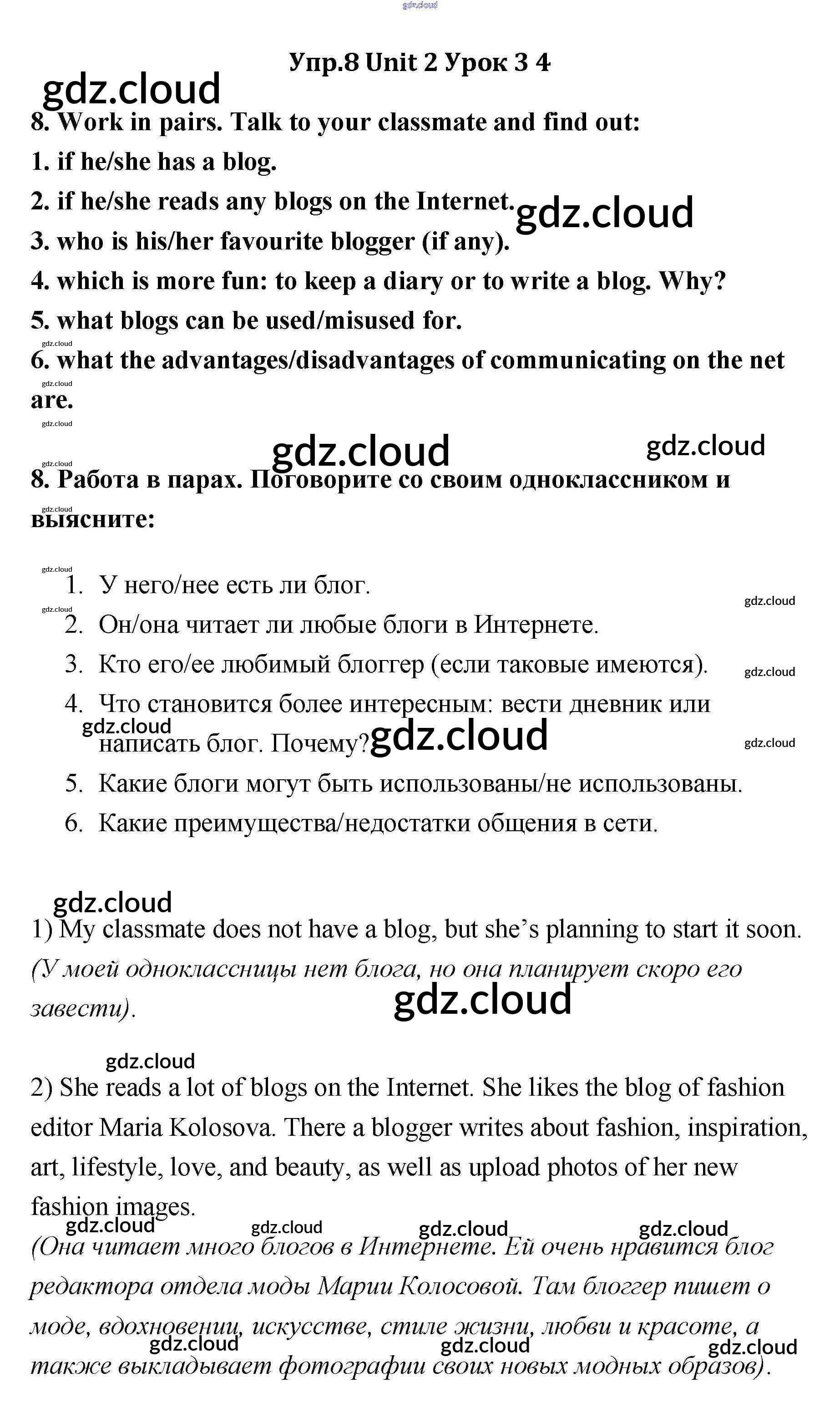 Ответ на задание 8 Учебник Английский язык за 11 (одиннадцатый) класс Кауфман Happy English 2014
