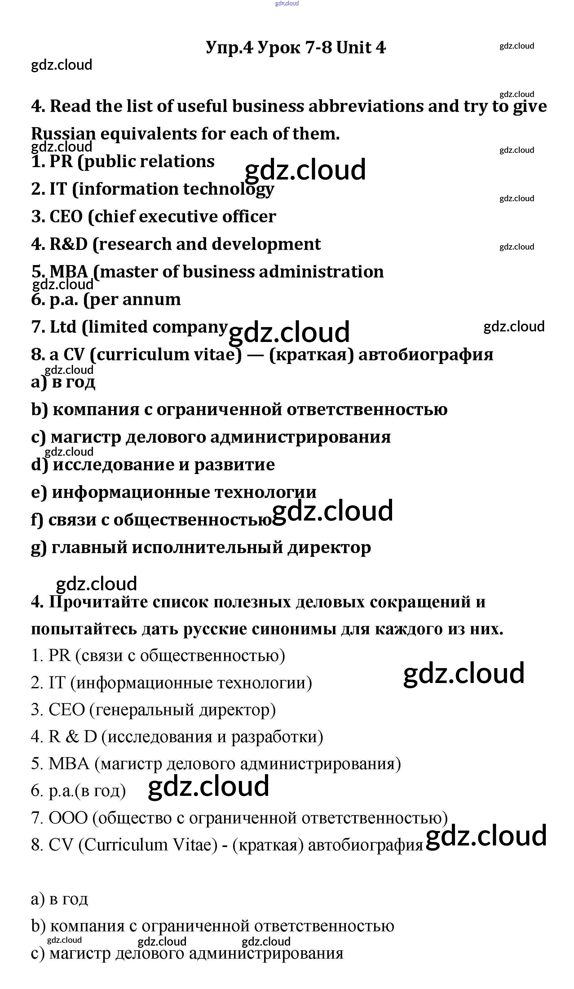 Ответ на задание 4 Учебник Английский язык за 11 (одиннадцатый) класс Кауфман Happy English 2014