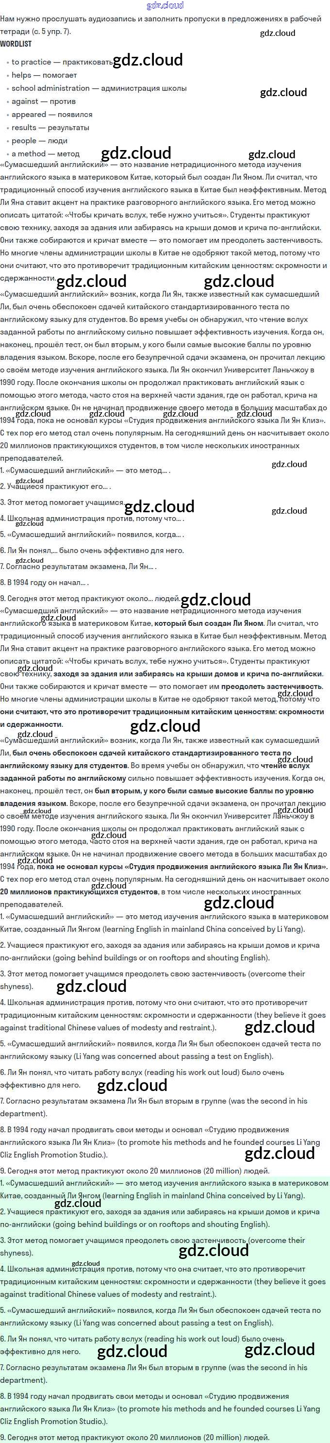 Ответ на задание 7 Рабочая тетрадь Английский язык за 11 (одиннадцатый) класс Биболетова, Бабушис, Снежко Enjoy English 2017