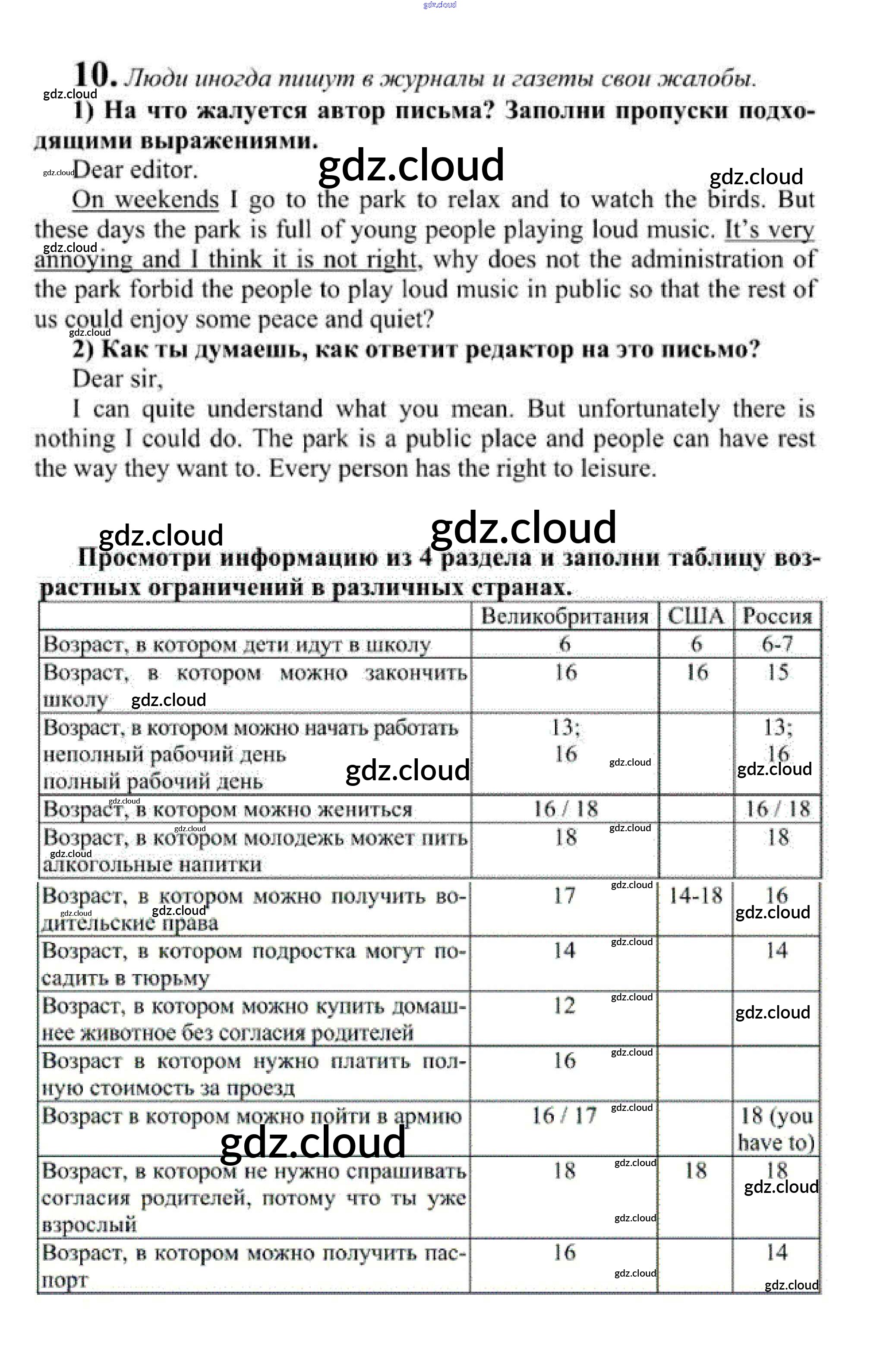 Ответ на задание 10 Рабочая тетрадь Английский язык за 10, 11 (десятый, одиннадцатый) класс Кузовлев, Лапа, Перегудова, Костина, Кузнецова, Дуванова, Кобец УМК 2012