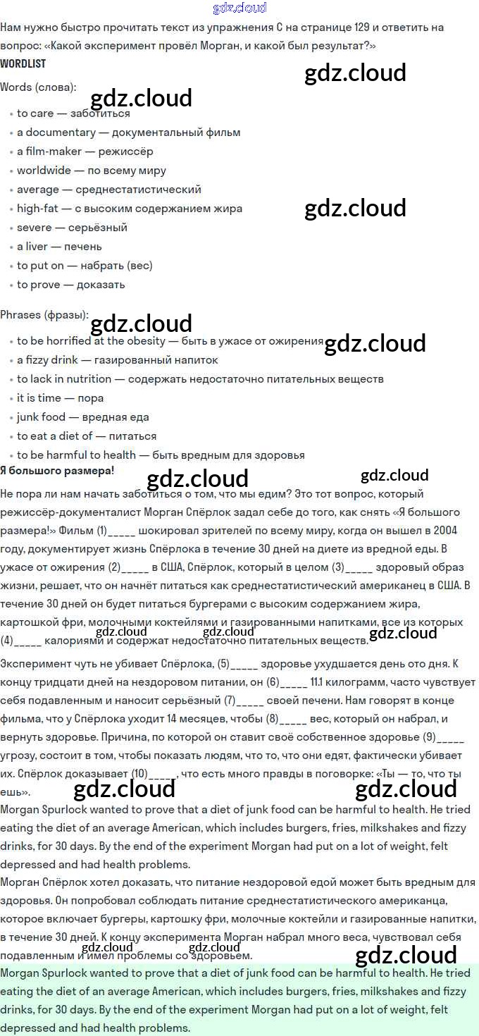 Ответ на задание 129 Учебник Английский язык за 11 (одиннадцатый) класс Ларионова, Комарова, Араванис, Кокрейн Инновационная школа Базовый уровень 2018