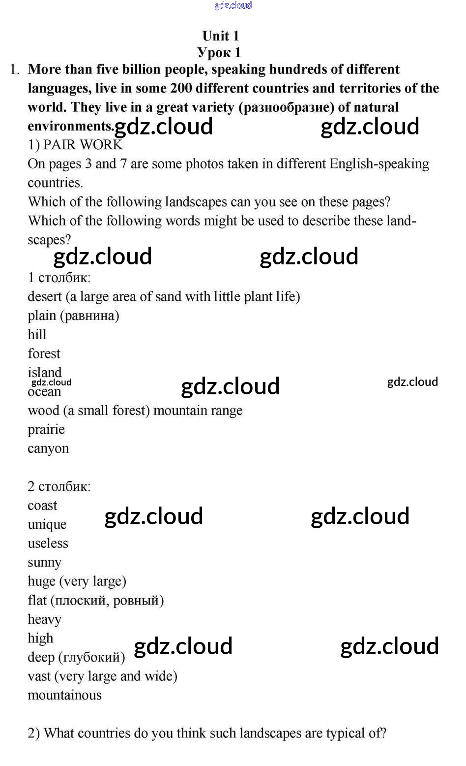 Lesson 1 Ответы к Unit 1. How Different the World Is? по Английскому языку 10, 11 класс Учебник Кузовлев Просвещение