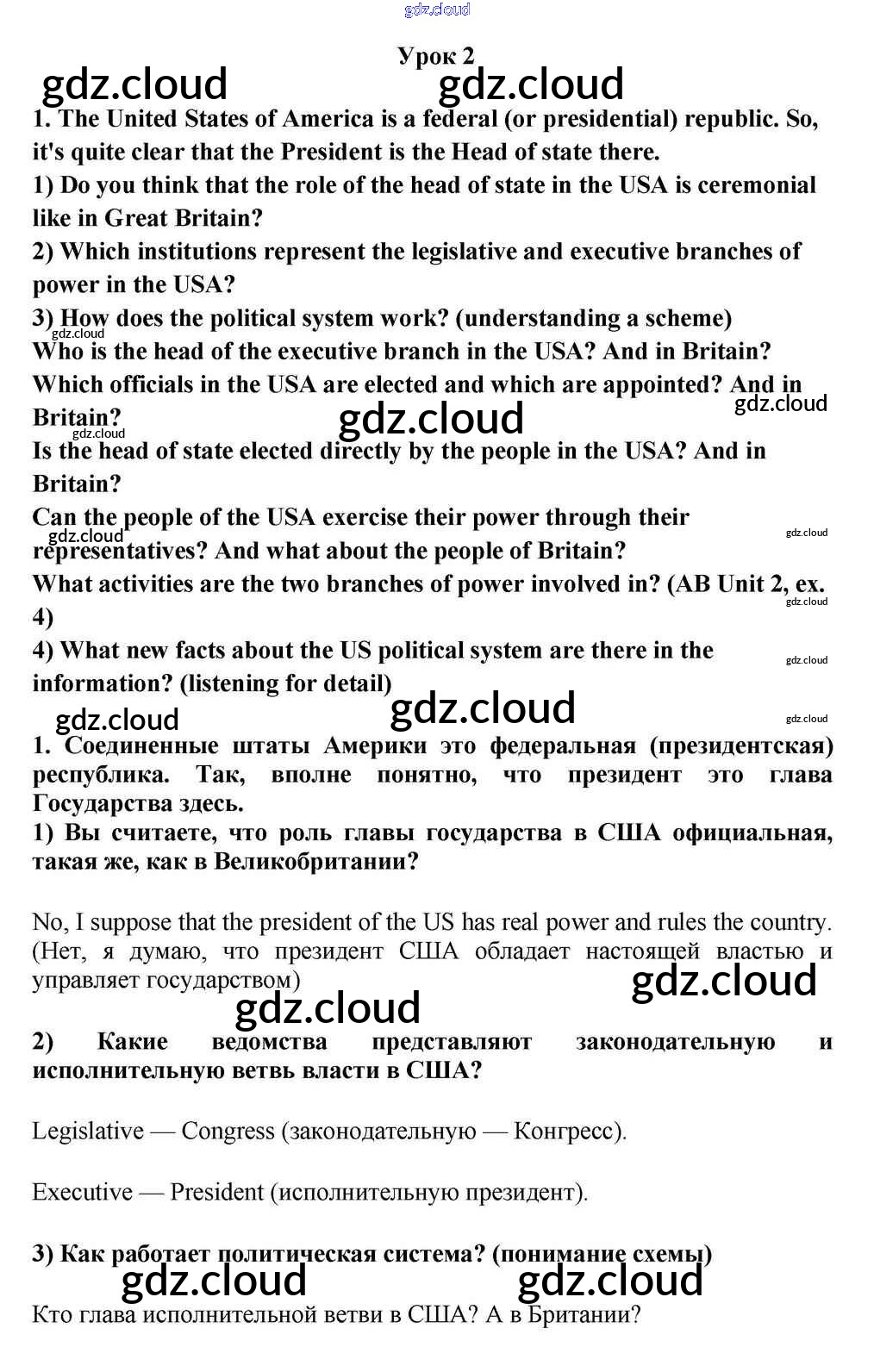 Lesson 2 Ответы к Unit 2. Western Democracies. Are They Democratic? по Английскому языку 10, 11 класс Учебник Кузовлев Просвещение