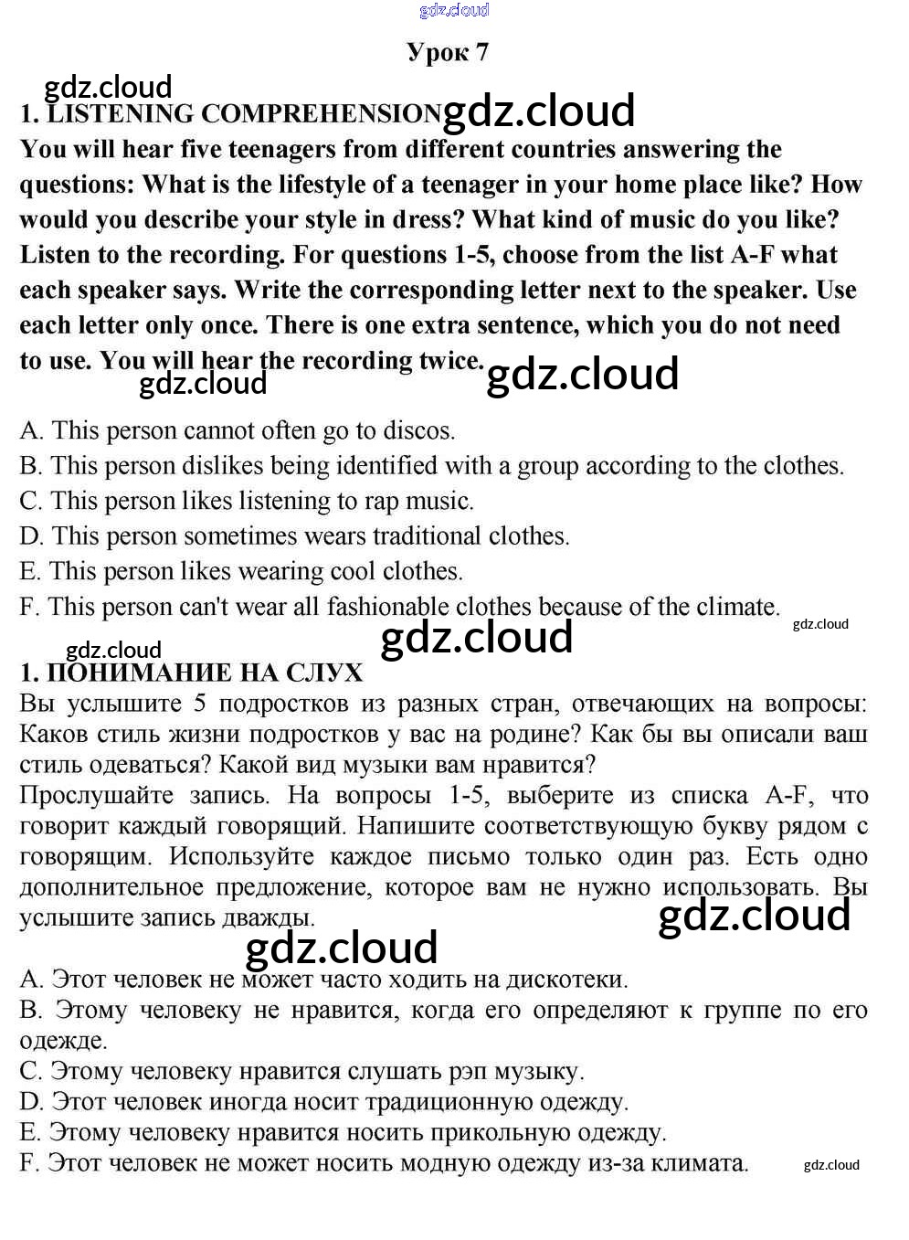 Lesson 7 Ответы к Unit 3. What Is Hot with the Young Generation? по Английскому языку 10, 11 класс Учебник Кузовлев Просвещение