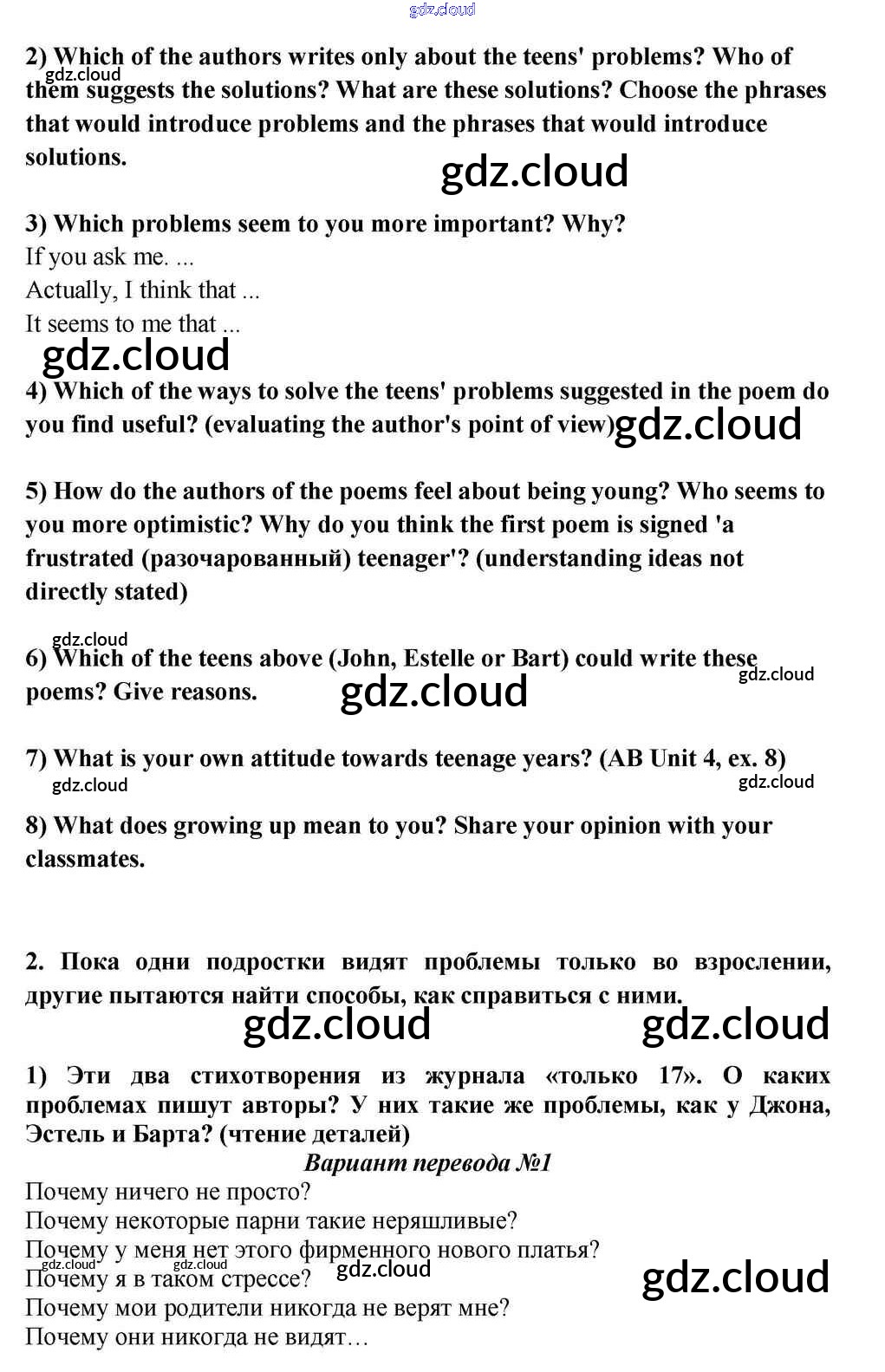 Lesson 4 Ответы к Unit 4. Is It Easy to Be Young? по Английскому языку 10, 11 класс Учебник Кузовлев Просвещение