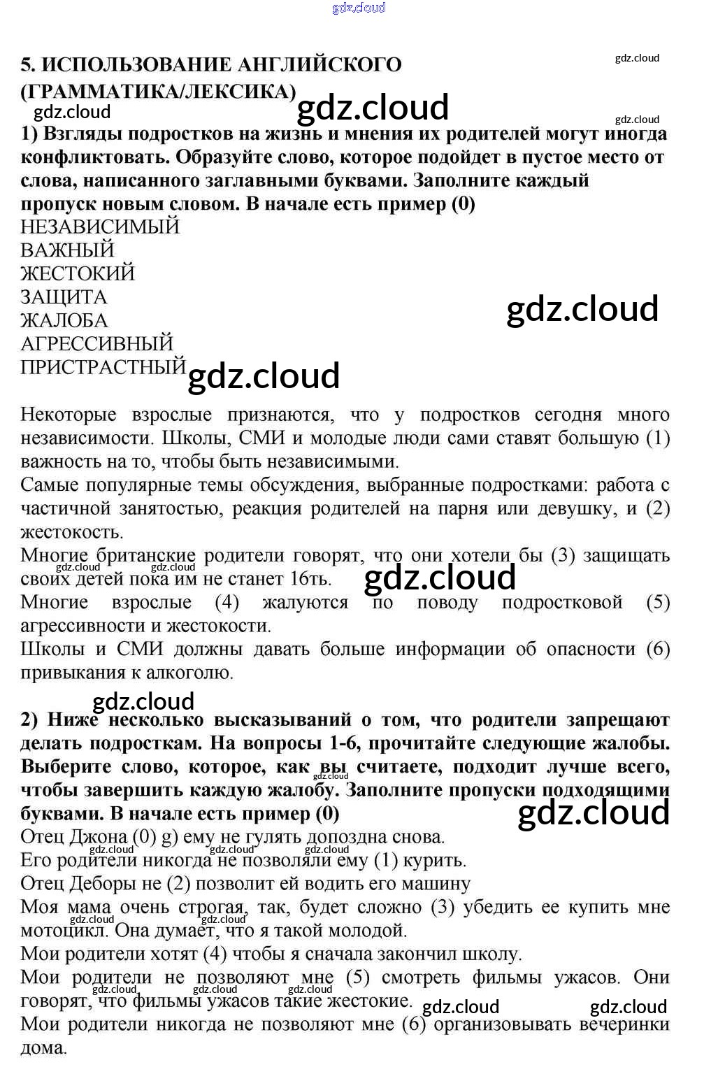 Ответ на задание 5 Учебник Английский язык за 10, 11 (десятый, одиннадцатый) класс Кузовлев, Лапа, Перегудова 2012