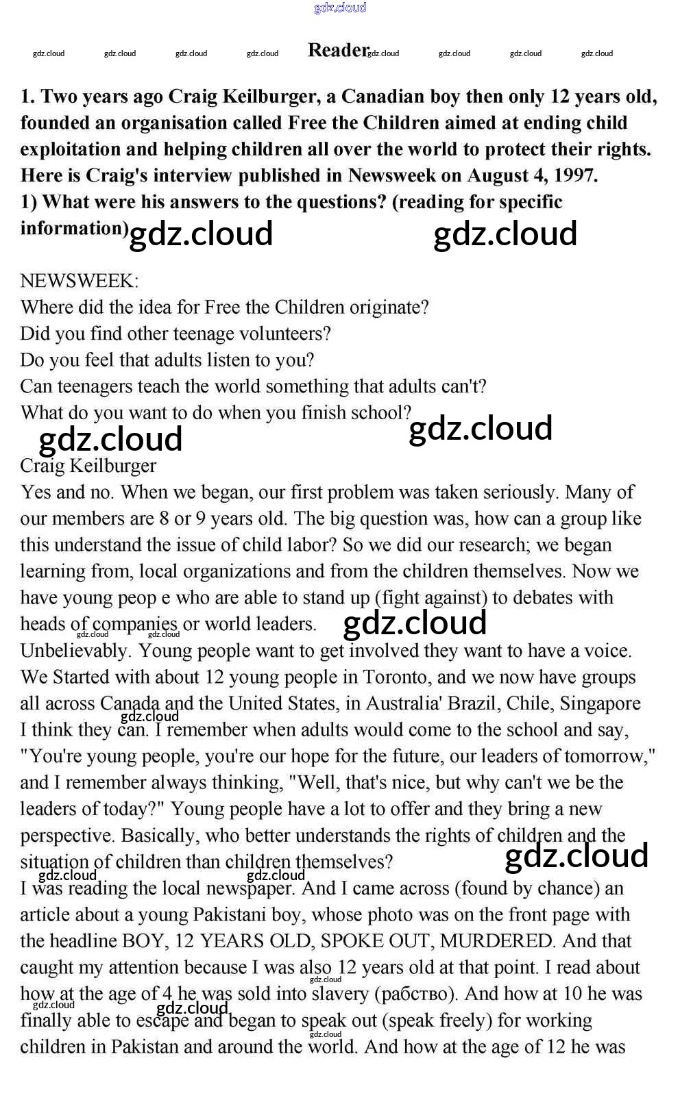 Ответ на задание 1 Учебник Английский язык за 10, 11 (десятый, одиннадцатый) класс Кузовлев, Лапа, Перегудова 2012
