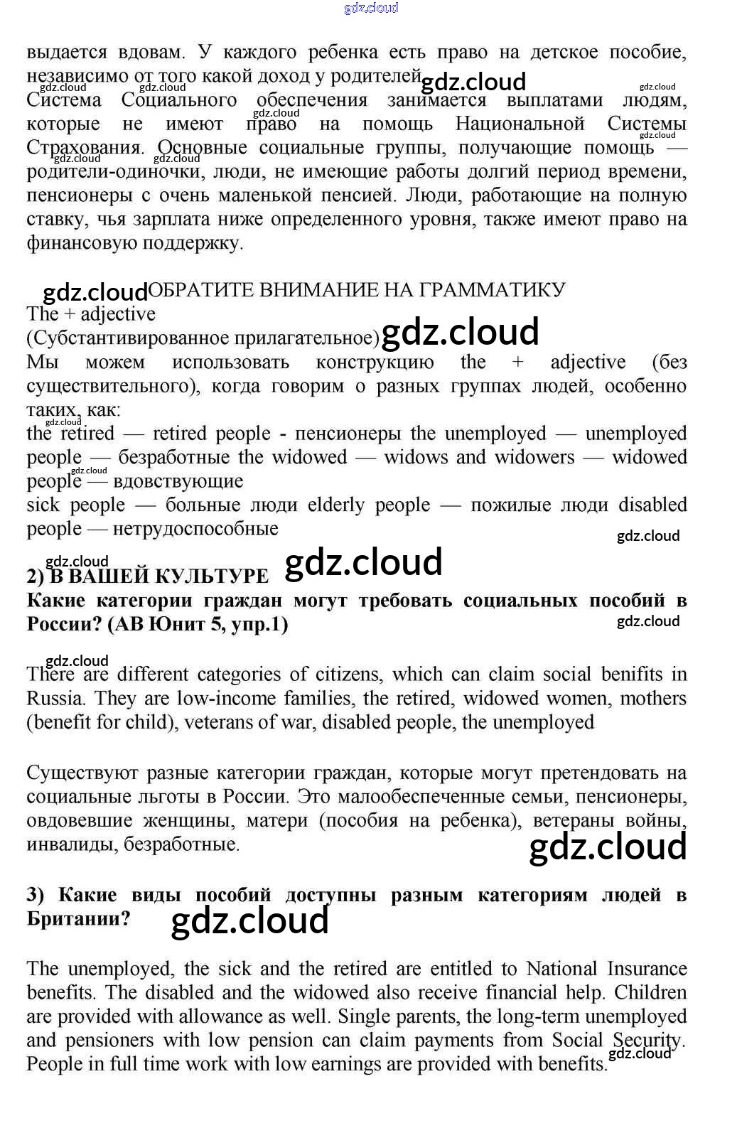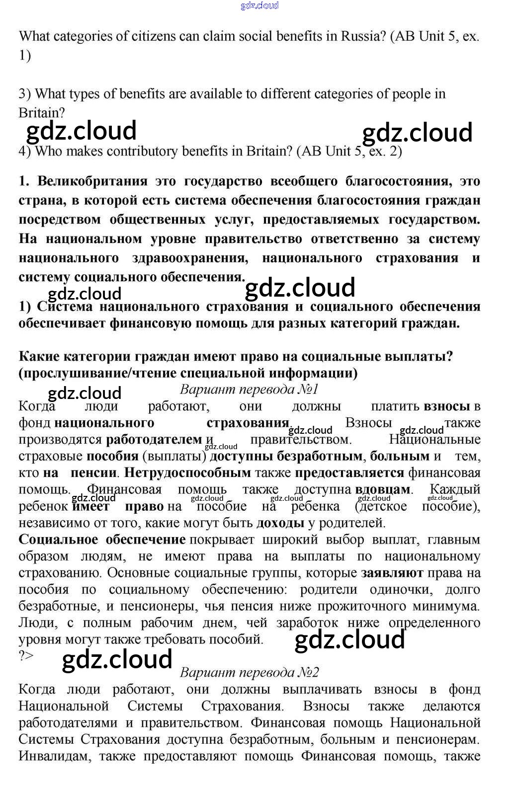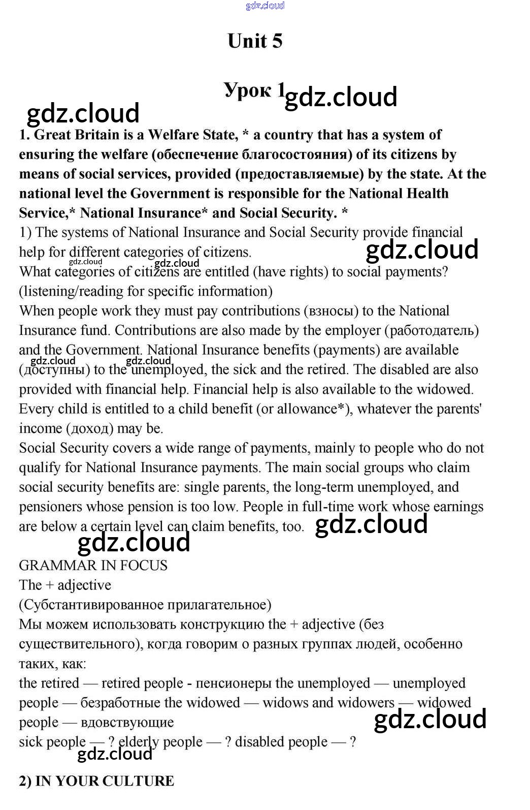 Lesson 1 Ответы к Unit 5. Is the System of Social Welfare Fair? по Английскому языку 10, 11 класс Учебник Кузовлев Просвещение