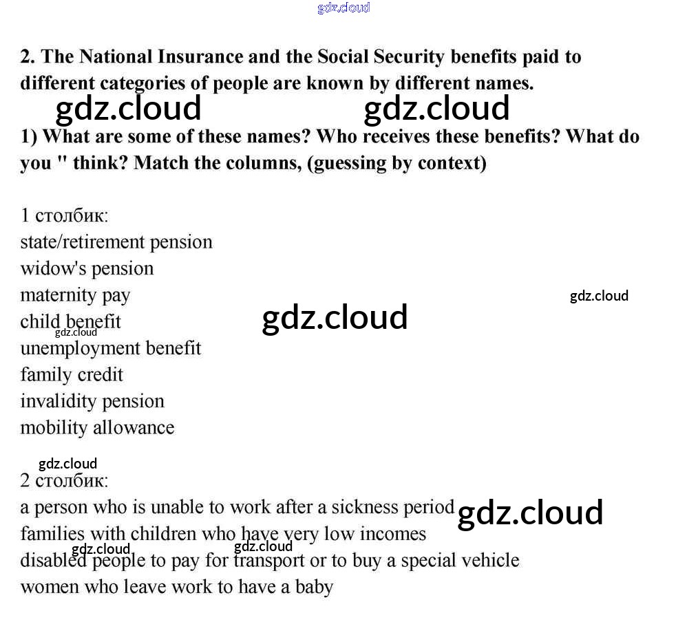 Lesson 1 Ответы к Unit 5. Is the System of Social Welfare Fair? по Английскому языку 10, 11 класс Учебник Кузовлев Просвещение