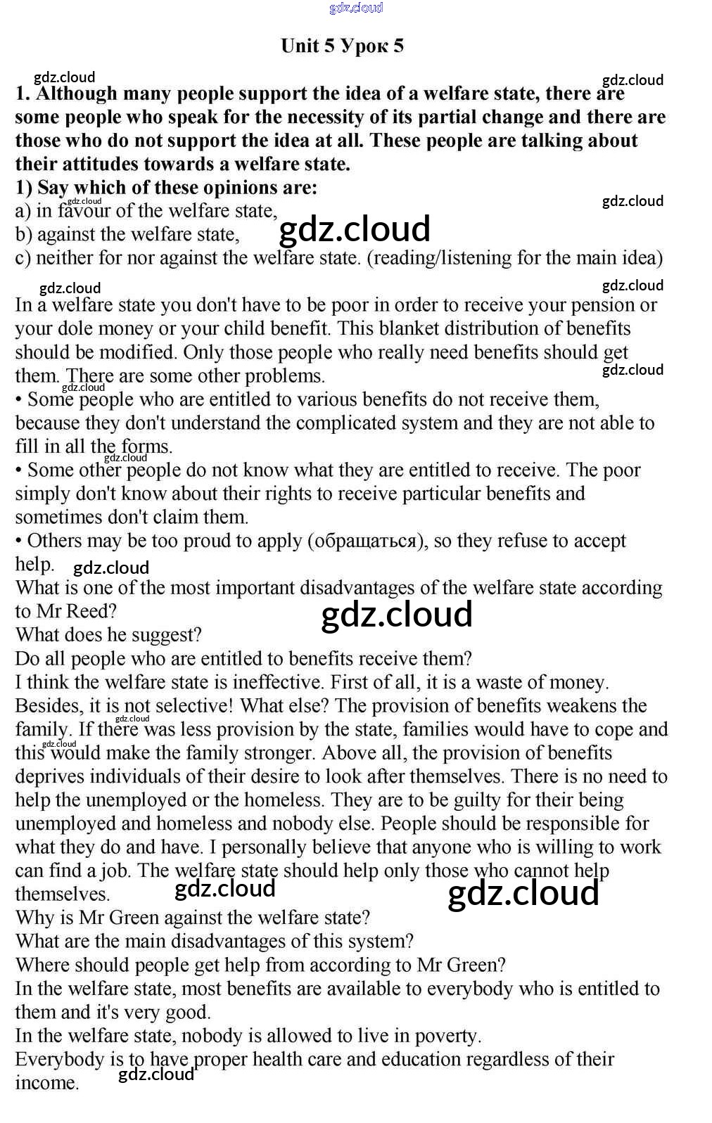 Lesson 5 Ответы к Unit 5. Is the System of Social Welfare Fair? по Английскому языку 10, 11 класс Учебник Кузовлев Просвещение