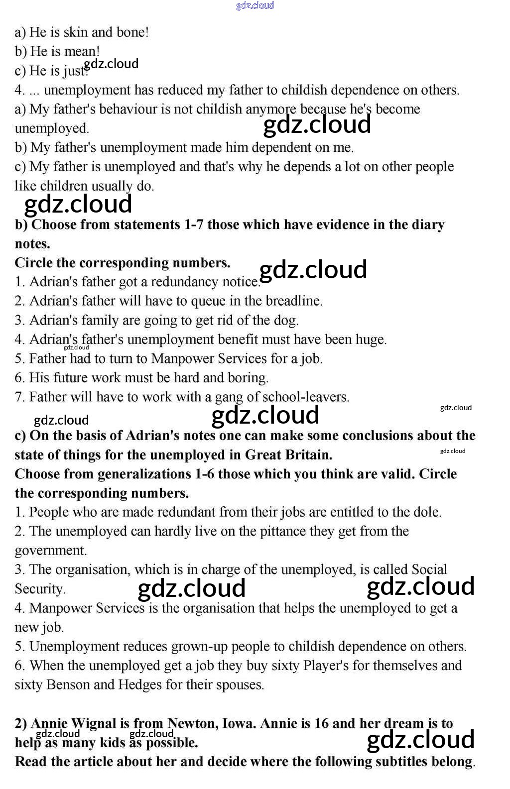 Lesson 7 Ответы к Unit 5. Is the System of Social Welfare Fair? по Английскому языку 10, 11 класс Учебник Кузовлев Просвещение