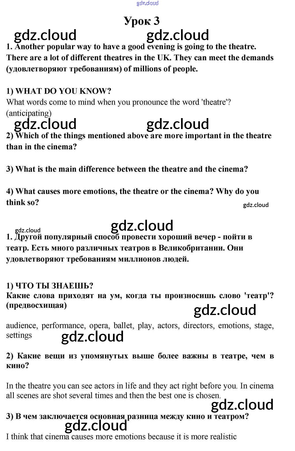 Lesson 3 Ответы к Unit 6. What Helps You to Enjoy Yourselves? по Английскому языку 10, 11 класс Учебник Кузовлев Просвещение